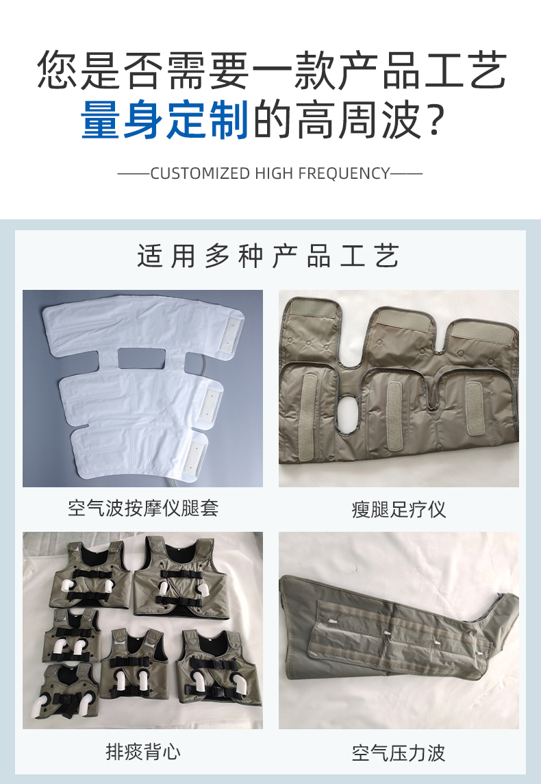 空氣波按摩儀腿套高頻機 咨詢熱線:+8613564342156 在線咨詢 產(chǎn)品詳細 本信息鏈接地址:/gaopinji/415.html 標簽: 相關推薦: 上一篇:石墨烯電熱膜封套熱合機 下一篇:PVC沼氣池軌道式高頻熱合機 用手機看 拍下二維碼,信息隨身看 試試用手機掃一掃, 在你手機上繼續(xù)觀看此頁面。